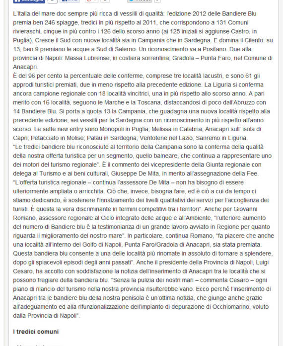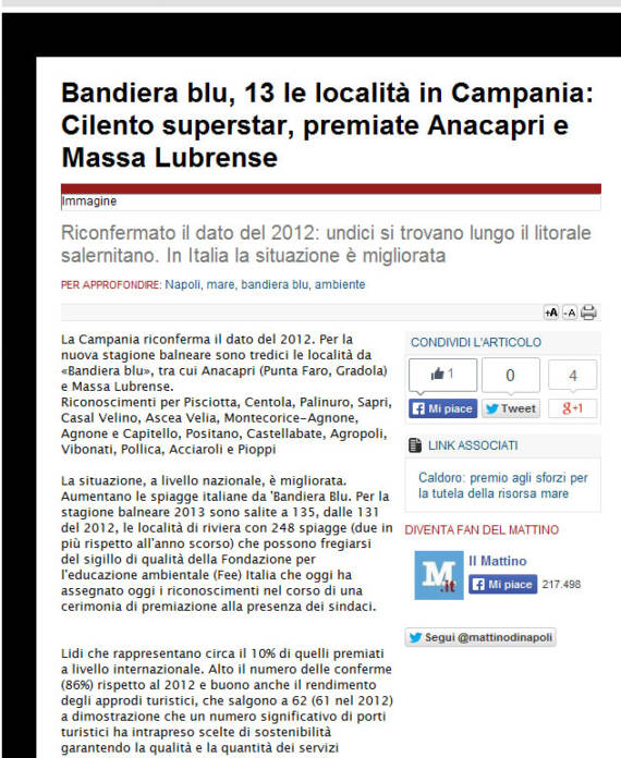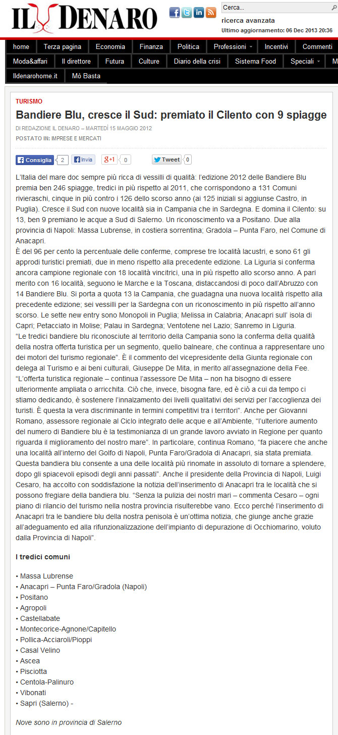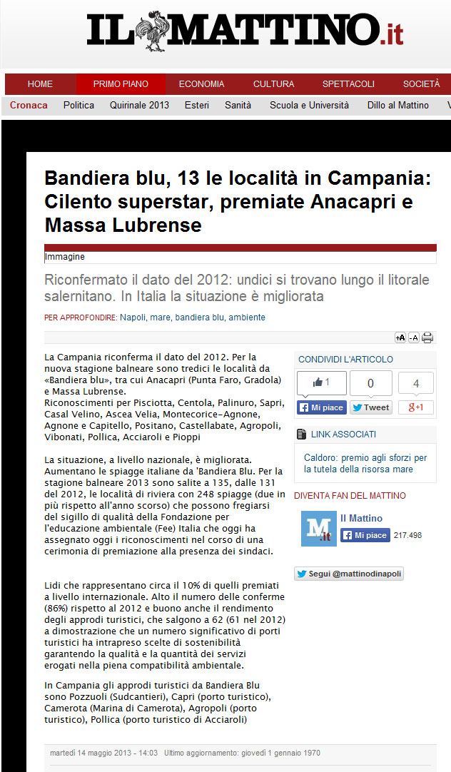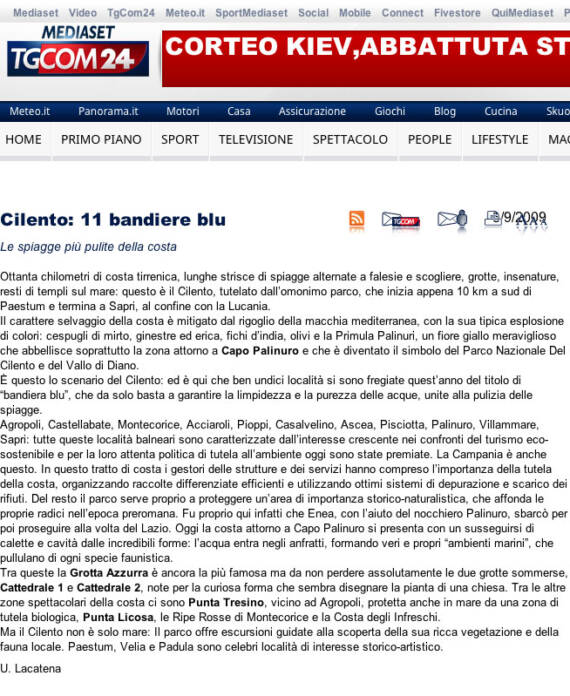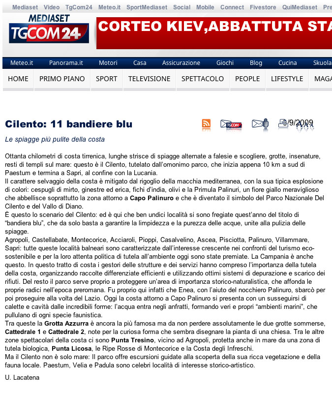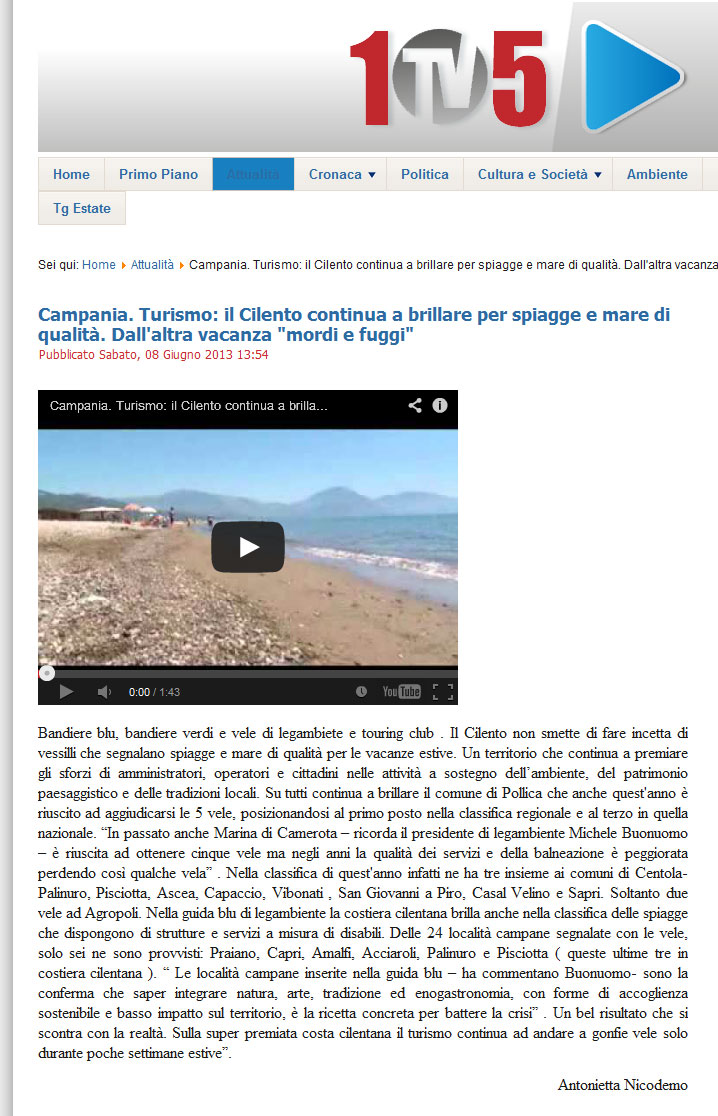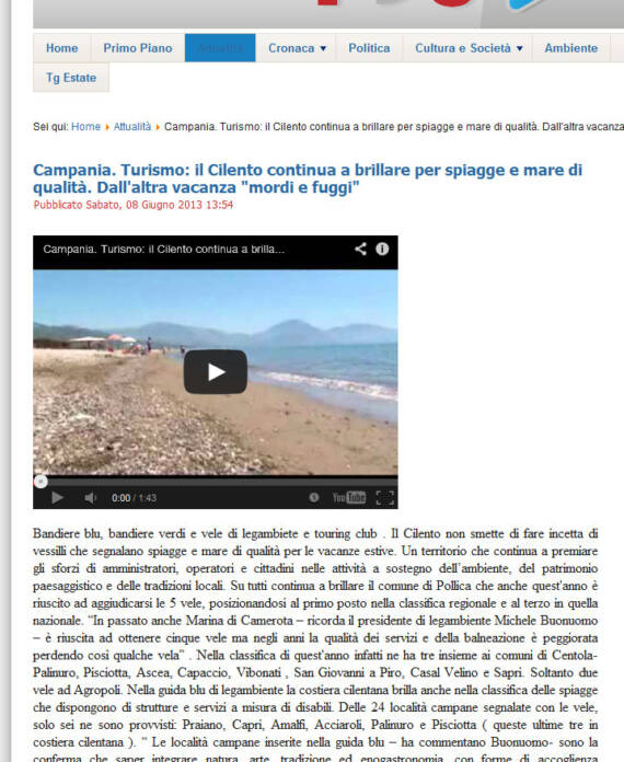Di seguito una selezione degli articoli pubblicati dalle maggiori testate giornalistiche in merito alle bellezze e alla pulizia del mare del Cilento che bagna Palinuro in particolare.